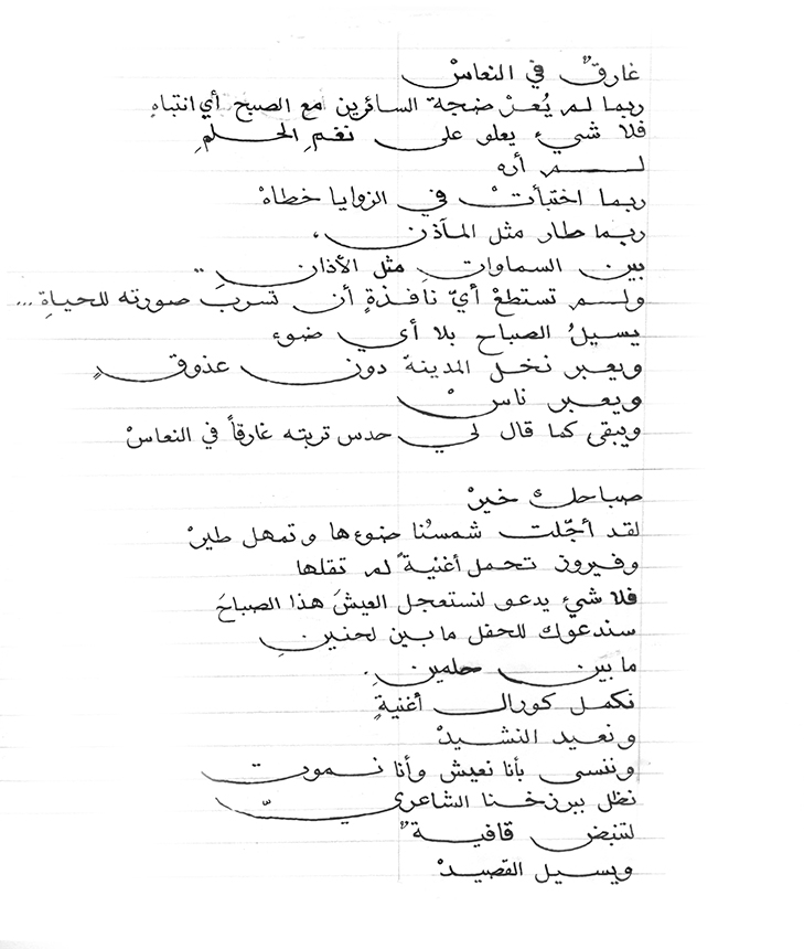 لم يكن خبراً عاجلاً. كانت رسالة مهملة ضمن “الواتساب”. لم تكن تليق برحيل صباحي هادئ، بانسحاب مفاجئ من ركضنا اليوميّ؟ وفي المقهى قرأت الخبر. غادر الناس، غادرت الطاولات، المقاعد، الندّل، الهواء. لم يبق غيري في مكان يغمره البياض أبحث عن كتف زائدة أبكي عليها. عن أحد يربّت على حزني. عن أحد يجعلني أهدأ.