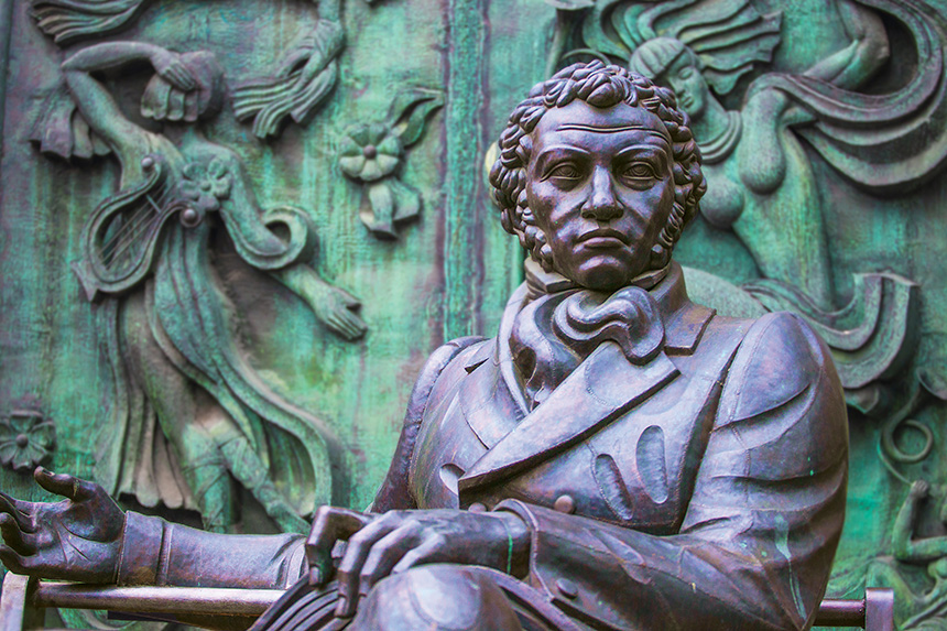 أثناء تجولك في شوارع مدينة سانت بطرسبورغ الروسية، فينيسيا الشمال كما تسمى، سيلفتُ نظرك وجهان يشغلان كثيراً من الأمكنة والقلوب، بطرس الأكبر مؤسس المدينة، صاحب الحُلم الذي أصبح حقيقة بإنشاء نافذة على الغرب حملت اسمه، والشاعر ألكسندر بوشكين الذي غرّد يوماً في سمائها، ونسج معها قصة عشق متفردة، ولفظ أنفاسه الأخيرة فيها، إنه شاعر روسيا والشرق في زمانه.