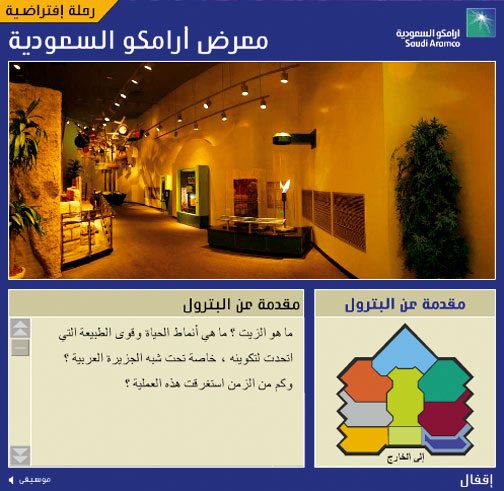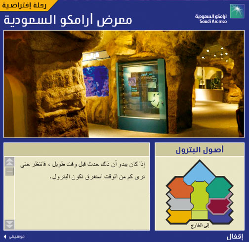كان عرضُ صور آبار البترول، وأنابيب نقل الزيت، وموانيء الشحن شكلاً أولياً للتعريف الذي كانت التعليقات القصيرة توضحّه وتشرحه. ثم أضيفت نماذج ومجسمات لبعض المرافق الصناعية فيما بعد. وعاماً بعد عام تحوّل المعرض إلى متحف يعرّف بصناعة الطاقة بشكل علمي يجمع الدقة والسهولة، وفي عام 1987م أنشيء المبنى الحالي، في الظهران، محتضناً تقنيات العروض الحديثة، لتتلوه مراحل تحديث متلاحقة جعلت من التجوال فيه نزهة علمية مفيدة. وفضلاً عما تستعرضه أجنحة المعرض من وسائل حديثة في التعريف بصناعة النفط؛ فإنه، أيضاً، يأخذ في اعتباره الجذور العلمية التي تتصل بها الحضارة العربية والإسلامية، وهذا ما يعبّر عنه جناح التراث العلمي العربي والإسلامي في المعرض.