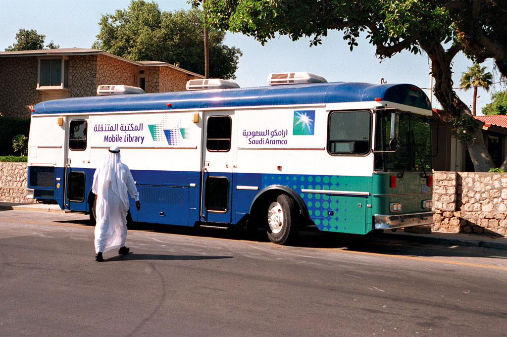 للتوّ بدأ «إبراهيم الحادي» قراءة كتاب «صلاح الدين الأيوبي» الذي استعاره وكتاباً آخر هو «أشهر المخترعين ومخترعاتهم» من مكتبة أرامكو السعودية المتنقلة. وخلال أسبوع، على إبراهيم، طالب الصف السادس الابتدائي، أن يقرأ الكتابين، قبل أن يعيدهما إلى المكتبة.