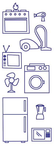 تشمل الأجهزة الكهربائية جميع الأحمال التي يتم تغذيتها من خلال المقابس الكهربائية، ويتم افتراض تيار المقابس في الحسابات غير المقننة بقيمة 1.5 أمبير لكل مقبس مع توصيل كابلات بمساحات مقطعية 4 مم2 أو 6 مم2، وتُعد هذه الطريقة مريحة جداً لكنها غير اقتصادية لذلك فإن الطريقة الأمثل لتحديد المساحات المقطعية الملائمة والاقتصادية تعتمد على الطاقة القصوى لأحمال الأجهزة بكل مرفق (والمشار إليها في الجدول أدناه)، مع الاعتماد على قيمة جهد التوزيع في المنزل لحساب قيمة التيار اللازمة لتشغيل الأجهزة، ولكن يجب ألا ننسى أن القيم المشار إليها في هذا الجدول قيم تقديرية لأكثر الأجهزة شيوعاً في الاستخدام وقد تختلف أحمالها القياسية من مُصنّع لآخر.