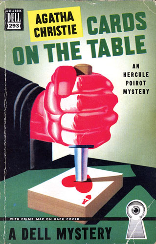 تدور بالطبع رواية «أوراق لعب على الطاولة» للروائية الشهيرة وواسعة الانتشار أغاثا كريستي حول جريمة وقعت وتنتظر الكشف عنها، وتحكي الرواية حياة أربعة أشخاص يلعبون الورق في غرفة كبيرة، ويجلس مضيفهم السيد شايتانا بمكره الكبير بعيداً عنهم بالقرب من موقد النار، وتوفر الكاتبة لجميع اللاعبين فرصة قتله والتخلص منه أثناء انشغال البقية باللعب. دافع القتل الذي نجده في اللاعبين الأربعة يدفع واحداً منهم إلى التجرؤ لقتل السيد شايتانا، وفعلاً تتم الجريمة ويلقى شايتانا حتفه بجرأة كبيرة وتحكم عال في الأعصاب. وتشتغل الرواية بعد ذلك في البحث عن الدليل المادي الذي يمكن أن يقود إلى القاتل، إلى أن يقوم السيد بوارو في النهاية بمعرفة القاتل الحقيقي، بحيلة ذكية اعتمدت على طريقة البحث في تاريخ المتهمين الذي كان يهددهم به القتيل.